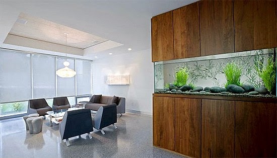 nhiều gia đình hiện nay lại ưa thích hồ cá treo tường được thiết kế chìm trong các bức tường.